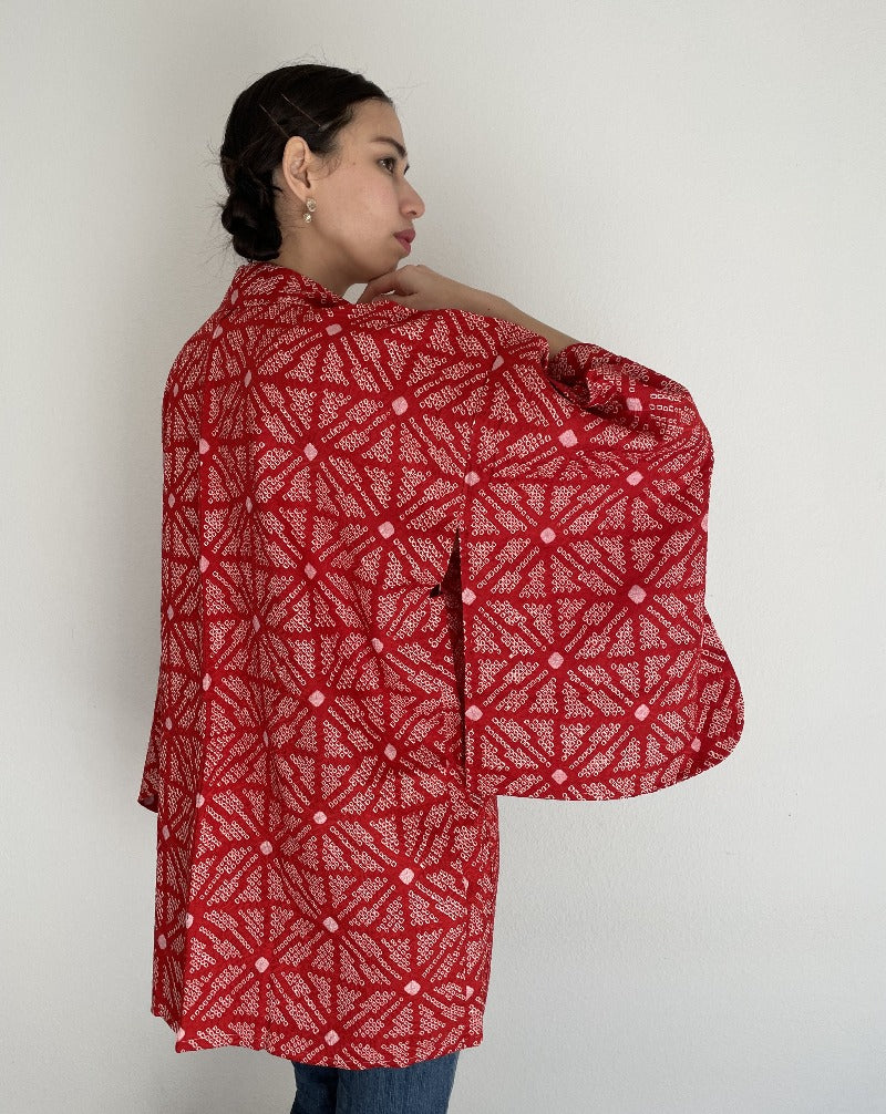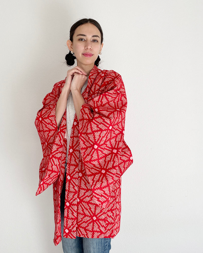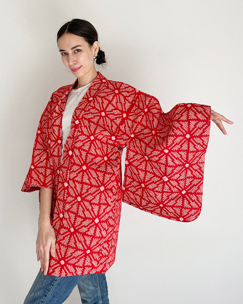 Hemp Leaf Textile Shibori Haori Kimono Jacket